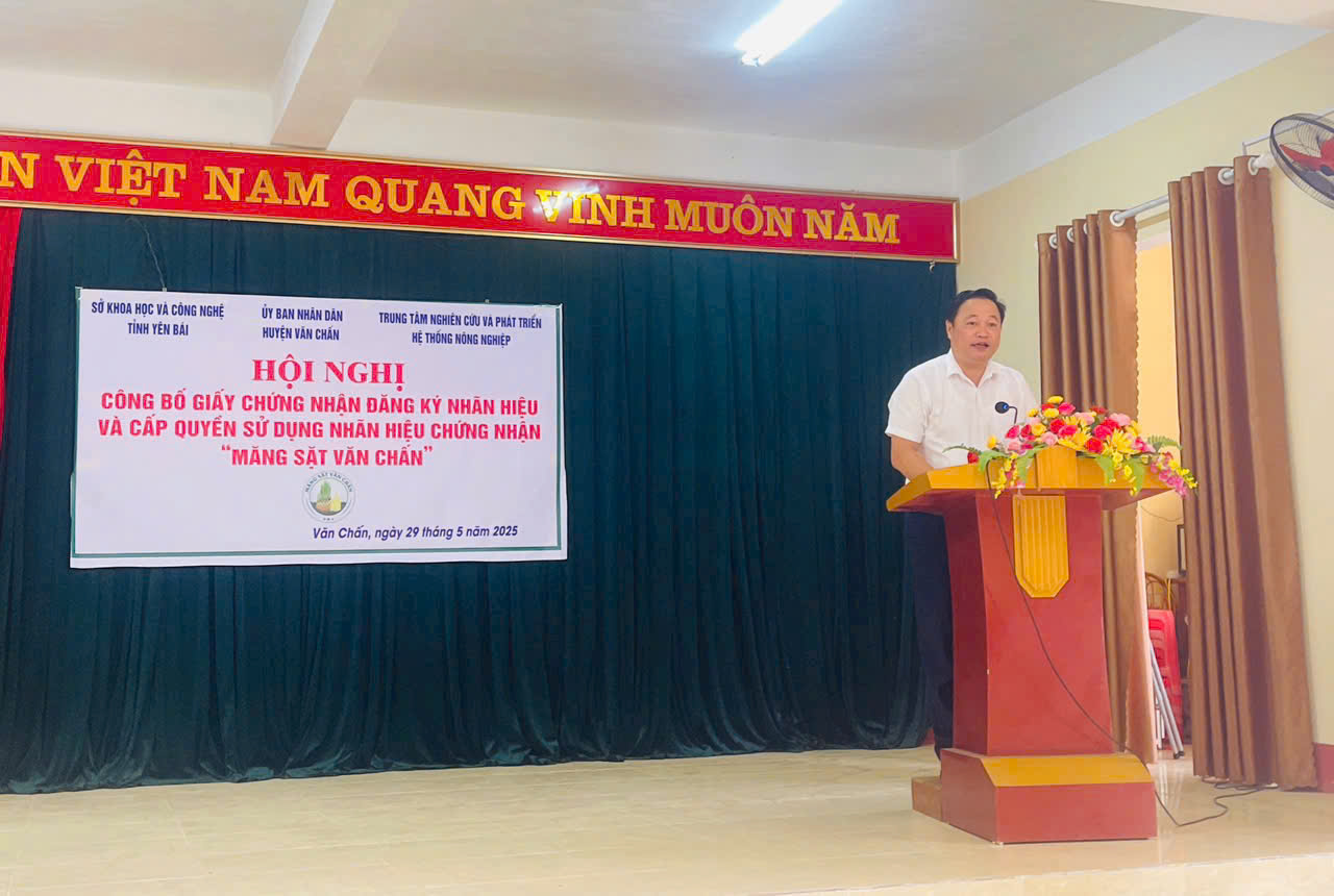 Ngày 29/5/2025, UBND huyện Văn Chấn tổ chức Hội nghị Cấp quyền sử dụng nhãn hiệu chứng nhận "Măng sặt Văn Chấn" cho các chủ thể sản xuất, kinh doanh măng sặt của huyện Văn Chấn, tỉnh Yên Bái.
